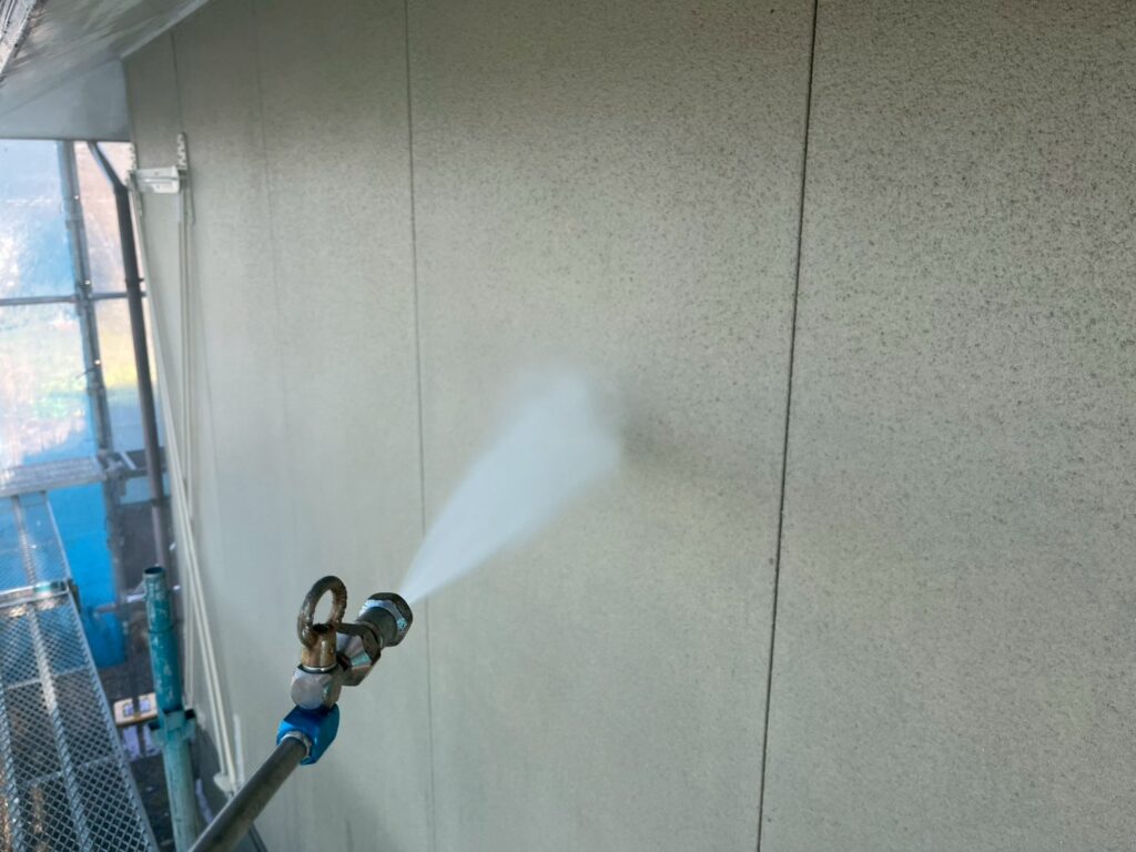 今回の現場では、外壁材を傷めないよう水圧を調整しながら、