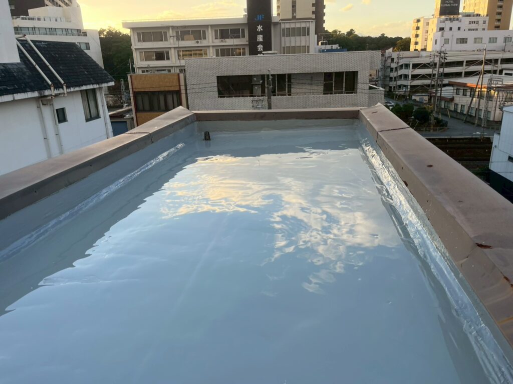 長期間にわたって建物を雨水から守る強固な防水層が完成します。