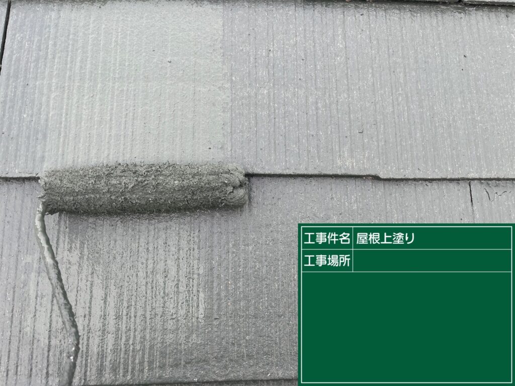 前回の下塗り・中塗りに続き、今日は屋根の仕上げとなる 上塗り を行ってきました。