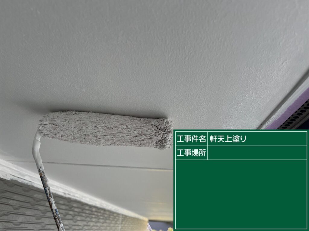 という流れで施工しました。軒天は外壁や屋根と比べると目立たない部分ですが、丁寧に塗り重ねることで住まい全体の美観と保護につながります。