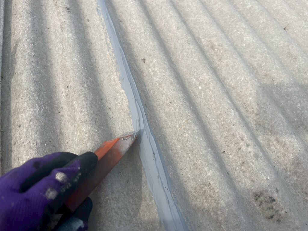 今回は 度会町にてスレート屋根のクラック補修と下塗り作業 を行ってきました。